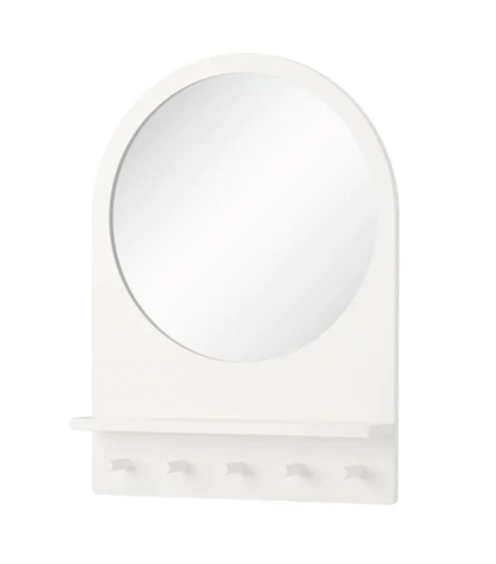 这个入口镜有一个架子和挂钩,这样你就可以把钥匙、钱包、帽子和其他东西都放在一个地方。