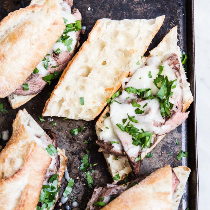 这种即时锅烤夹头,就是要在烤大蒜面包传播与波萝伏洛干酪融化在上面,并在其自己的绝对下跌。它需要一个小时40分钟煮这个2.5磅重的盘烤嫩,但它是完全值得的。肉熟用酒和牛肉汤的味道最高。