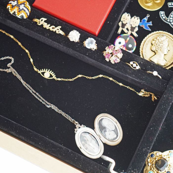 骑士让她珠宝安全存储在最终的组织天鹅绒内衬抽屉。
