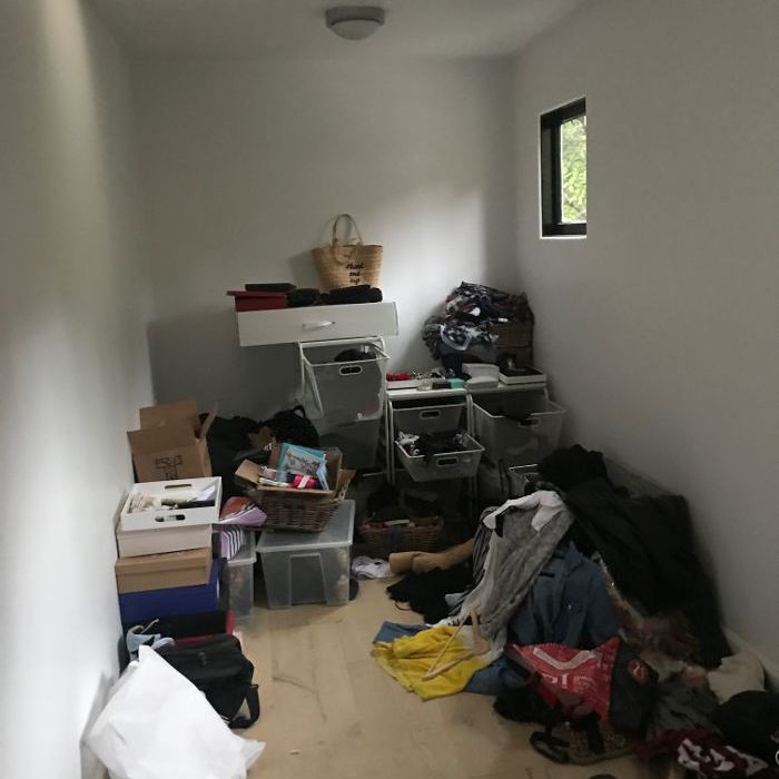 “房间裸露和过这种可怕的灰色的塑料复合地板,”记住奈特。随着一些工作和定制的,它变成了一个严重的华丽壁橱空间。