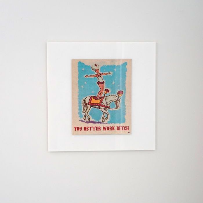 “我爱我的老式‘你更好的工作婊子’打印,”奈特说。这是完美的艺术墙为了激励自己做好准备为前一天。