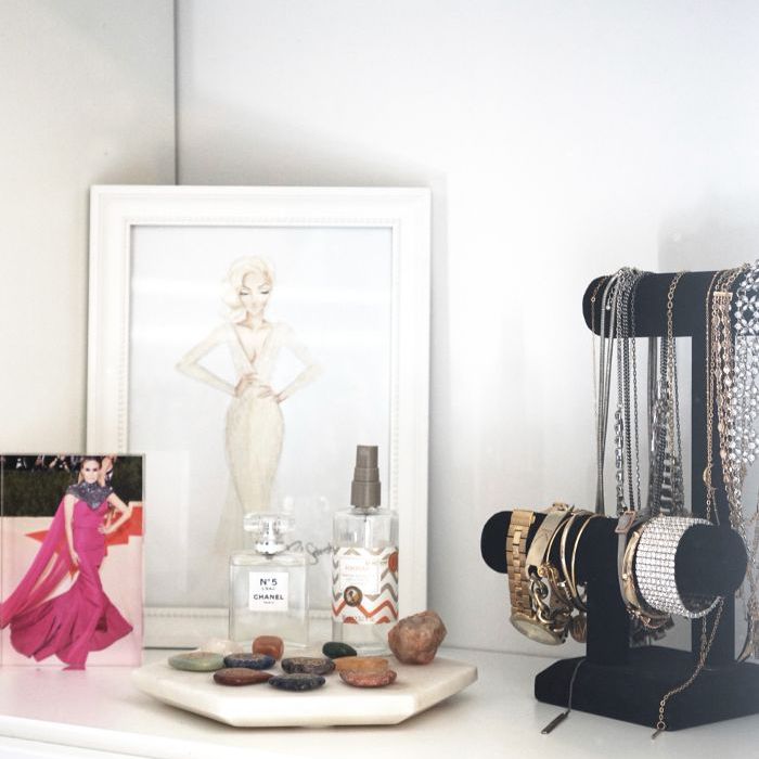 “我已经有黑色天鹅绒衣架的整个衣柜和一帮来自于我最后的家组织块。我喜欢跟随的首页编辑和使用它们的丙烯酸片的建议,组织我的离合器和皮包。一切都是新的,”她说。
