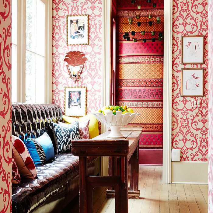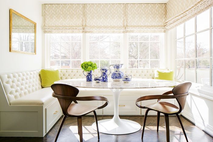 在她的签名看,新奥尔良厨房室内设计师的梅丽莎英里Rufty充满模式!使用一张窄桌,她能够创造一个舒适的厨房长椅,即使她是在处理小平方英尺。