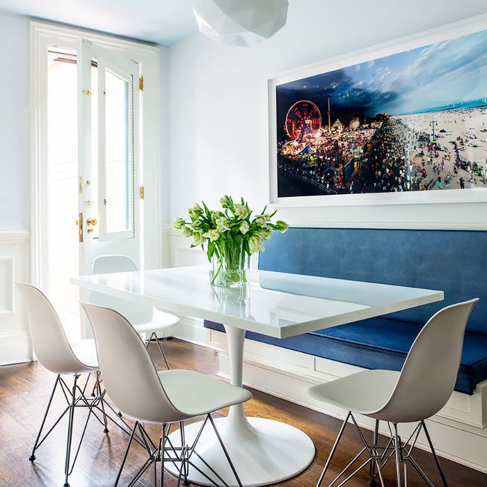 由总部位于纽约的室内设计师设计布莱尔哈里斯,这种平静的蓝色厨房的长椅是当代但感觉的过渡,由于空间的传统的骨头。我们爱沿海摄影如何补充了空间的色彩。