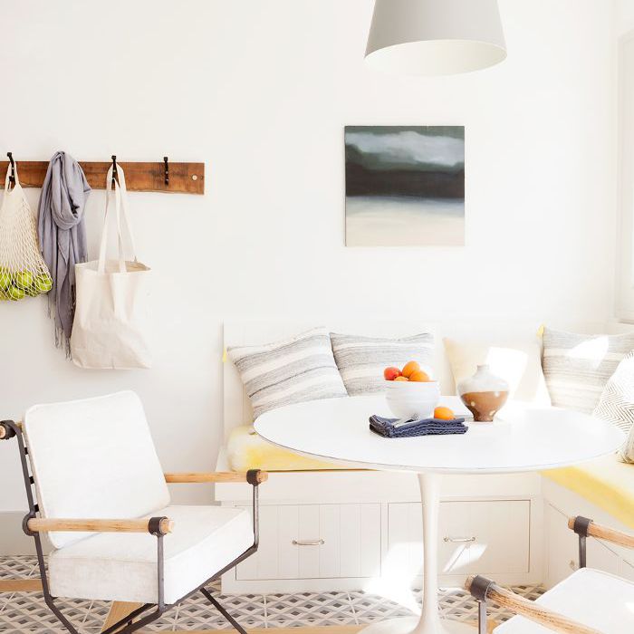 由洛杉矶设计西莫设计在美国,这个小小的厨房长椅是一种别致而简单的视觉效果。我们喜欢它的经典咖啡椅的哑光效果。早上喝咖啡的地方看起来是那么宁静和可爱!