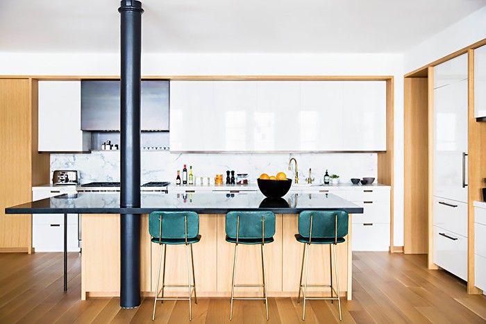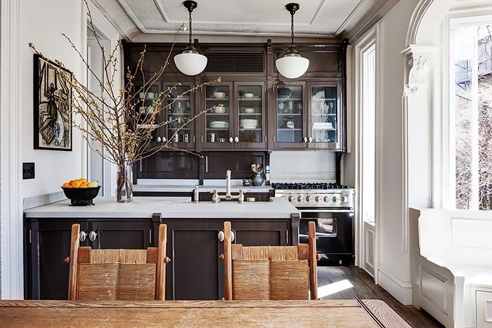 在这个华丽的纽约厨房里,空间是有限的,柜台的凳子被移走,以代替更多的存储空间。厨房的另一端兼作餐厅,一扇凸窗为梦幻般的早餐区营造了氛围。