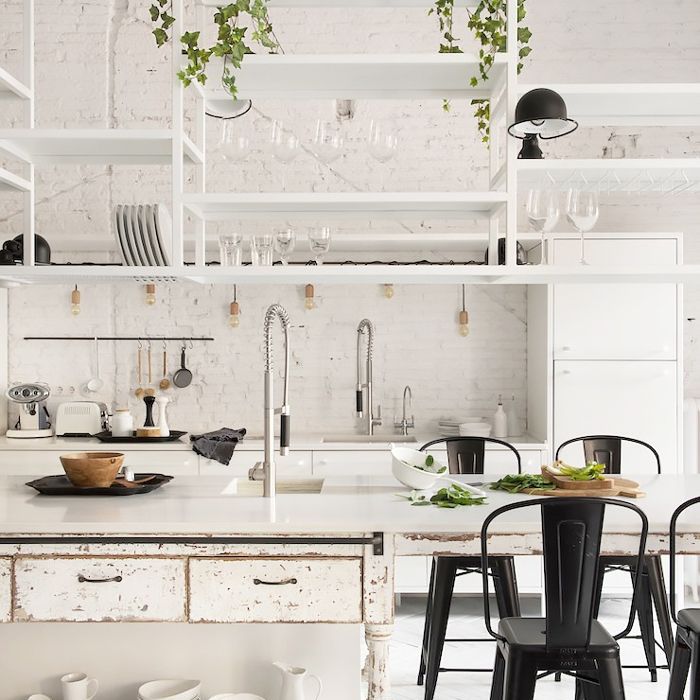 根据调查,“业主们正在翻新他们的厨房,以创造一个超级厨房它不仅有多种用途,还融合了其他房间的传统特征、功能和装饰,极大地模糊了厨房和其他生活空间之间的界限。”一个staggering 69% of the 2400 surveyed homeowners said they used their kitchen for eating and dining, while 49% entertained in the space. Among the popular features added in U.S. kitchens in the past year are TVs, workspaces, and dining tables.为了帮助你计划你的下一个改造,我们已经围捕充满了如何重新创建你自己的家外观伟大的秘诀我们最喜欢的开放式厨房。准备好针到你梦想的家板。