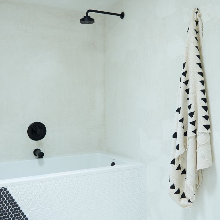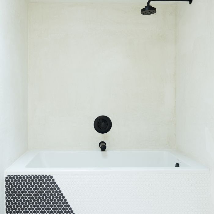 “我们所用的混凝土薄涂层的墙壁上并创建了一个完全防水的湿室”。