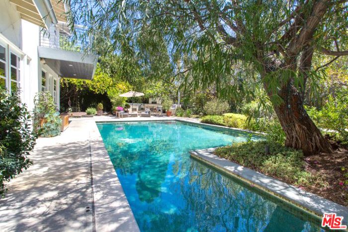 别致的餐厅开辟了梦幻般的后院设有一个宽大的游泳池和连绵起伏的绿色庭院,享有好莱坞湖水库。画廊墙壁和书架增添了温馨的氛围。