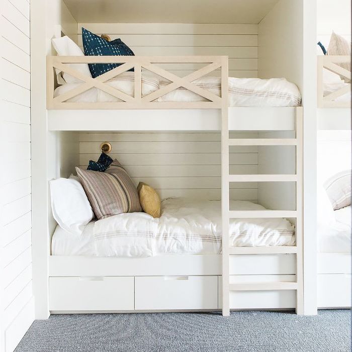 “如果孩子年纪小,不具备在家里的另一个游乐区,最常见的节省空间的设计决策是要选择双层床。如果小家伙们很年轻,需要一个专门的游乐区,我通常只走这条路在家里,如双层床价格昂贵,而且孩子会长得很快的人出来,”麦克伦登说。所以,如果双层床的问题了,麦克伦登建议你“充分利用垂直空间”通过选择窄,身材高大的家具。
