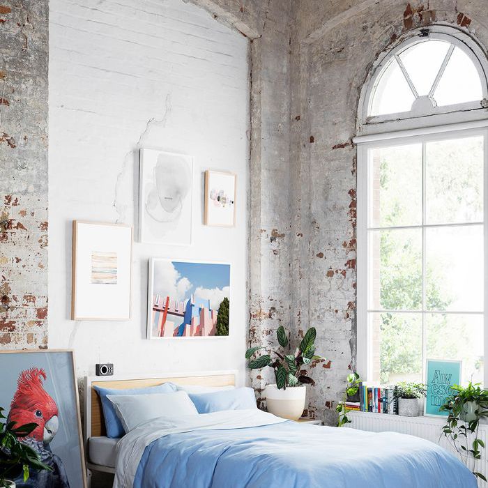 其中一个给你的卧室一个最好的方法类似阁楼,画廊风格的感觉是做什么策展人:精益进去。倚艺术或靠在墙上的镜子给卧室点头阁楼生活,使毫不费力地收集你的装饰感觉。