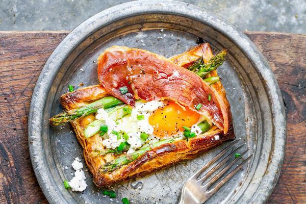 鸡肉,马铃薯,布里和百里香挞洋葱果酱