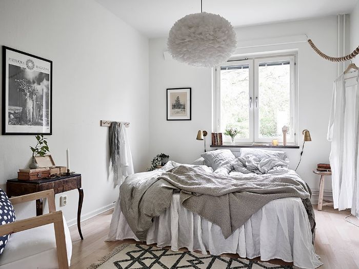 整理床铺可能是去年的事了,但是完全不整理床铺的艺术仍然需要一些练习。一个技巧我们对瑞典闺房的痴迷是保持床上用品轻便和以亚麻布为主。亚麻织物天生就有褶皱和褶皱的质地,这使它成为一个理想的选择,当你想要一个自然的卧室外观。这种面料舒适、随意的特性也让它很受欢迎:如果表面已经起皱,你的客人坐着或躺下时就不必担心弄脏它。