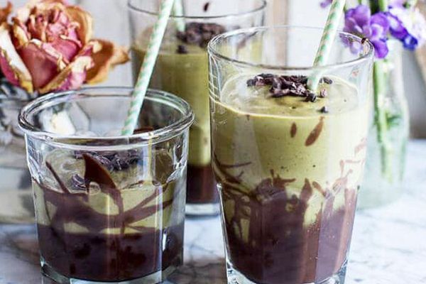 这个素食主义者冰沙让一个真棒早餐或中午快餐。所有你需要的是冰冻香蕉,香草杏仁牛奶,抹茶粉的只是一点点。提醒一下,这是一个将让你的消化系统相当的提振抹茶。