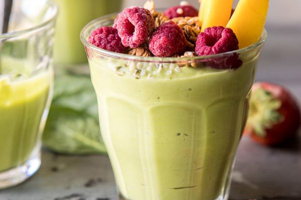 诀窍这刷新冰沙是辣椒,它增加了一个意外踢新鲜芒果和冷冻草莓。椰子水和新鲜的姜根圆了饮料,而肉桂有助于调节血糖(和减少饥饿)。