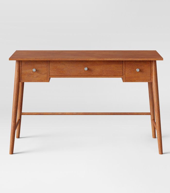 一个时尚的,到本世纪中叶风格的办公桌上的微型足以挤压到一个角落里还没有强大到足以容纳你所有的办公必需品,这可能是我们的风格和价位的最爱之一。