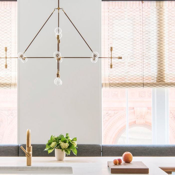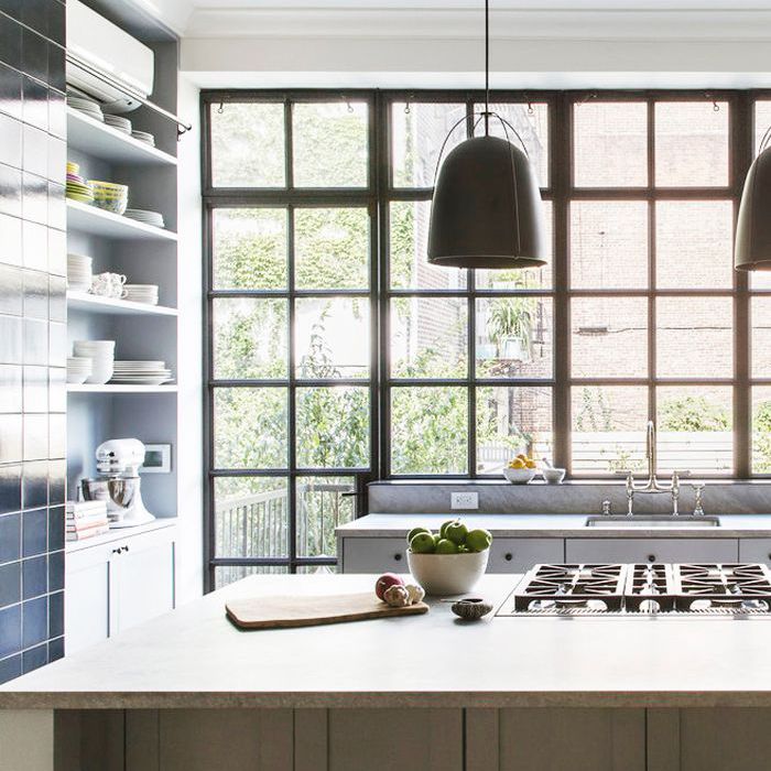 担心你的厨房会觉得小和拥挤,如果你选择深色油漆或吊灯?由于充足的自然光,这个厨房避免了这两个陷阱。