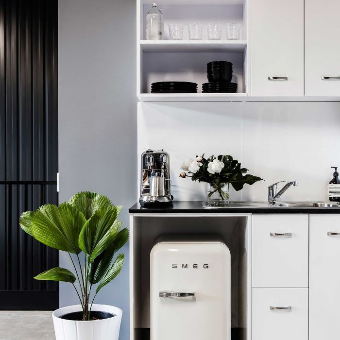 是的,办公室厨房可以很时尚。澳大利亚美容业企业家埃莉诺•彭德尔顿(Eleanor Pendleton)在悉尼的住所向我们展示了这是如何做到的。选择高质量、设计精良的家用电器,比如这款Smeg冰箱,无论你的厨房面积有多大,它都是你的宣言。