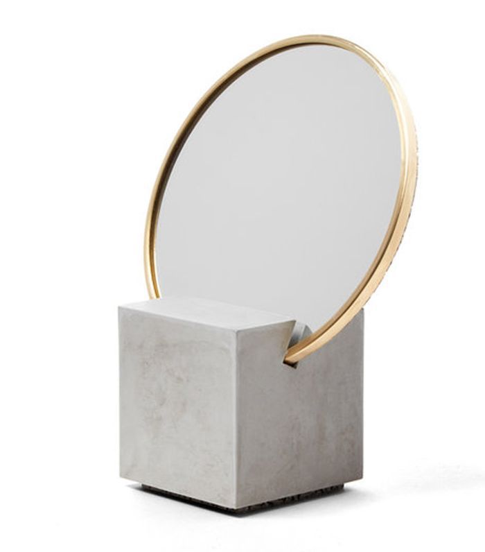 用手工浇铸立方体碱与黄铜框镜从斜杠对象替换您梳妆镜。