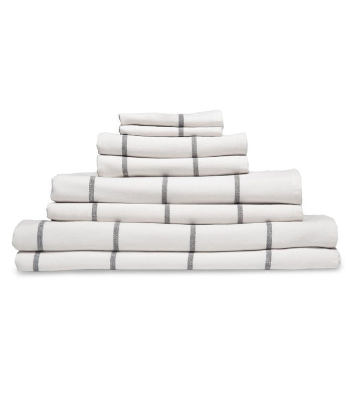 清脆的新毛巾永远是最廉价和最有影响力的浴室升级之一。我们喜欢这种清洁伏塔加从降落伞设置。