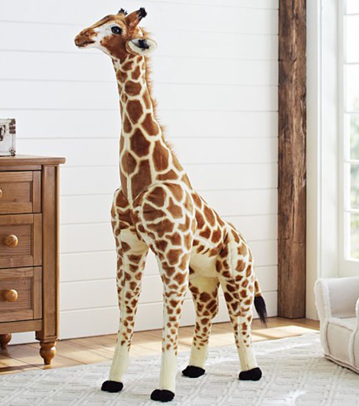 玩具长颈鹿是另一个有趣的补充和克尔的空间最大的发现之一。“长颈鹿让我很兴奋;几年前我在旧金山的陶器仓库办公室看到过它,我一直认为把它放在孩子的房间里会是一件很棒的作品,”她说。“所以当我们开始考虑装饰的时候,我意识到长颈鹿还在生产中,我非常兴奋。”The plush animal just happens to be the perfect height for the wallpaper tree line—it peeps over the canopy and watches over baby Clark's cot below.