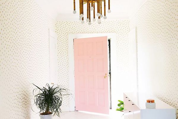 虽然他们现有的地毯使选择调色板变得又快又容易,但设计过程的其他方面要乏味得多。“我们花了很长时间寻找合适的墙纸,”科尔说。他们想要一种模式,在不过度性别化的情况下,为原本灰白色的房间增添个性。最终,他们发现了这个异想天开的森林壁纸叛军墙壁和知道这是完美的结合。“[我们]爱,它使我们能够带来更多的色彩进入空间了。”