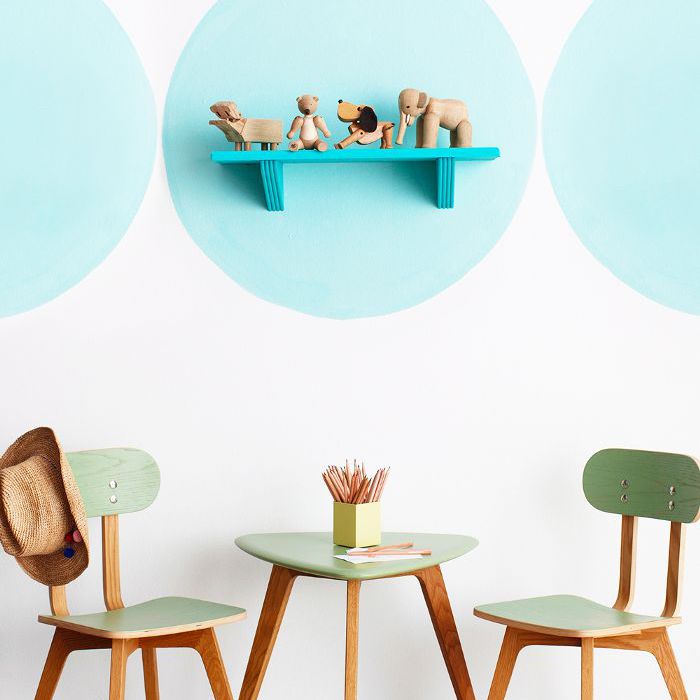 与天然木,白,和绿化工作瞬间汇集了现代的氛围,也是放荡不羁的任何房间。添加色彩更触动了书架上展示的玩具。