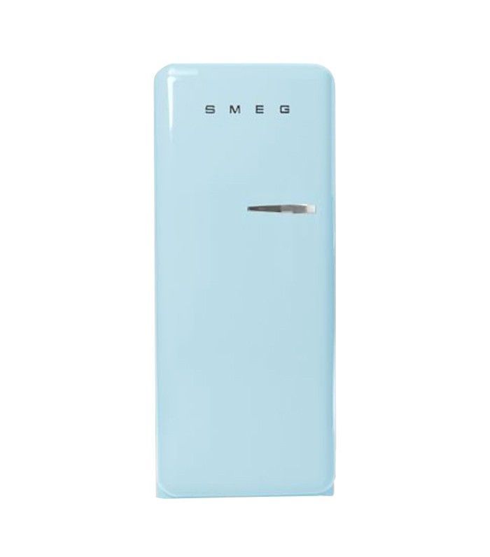 蓝色粉末的老式Smeg冰箱给厨房增添了一丝老式的凉爽。
