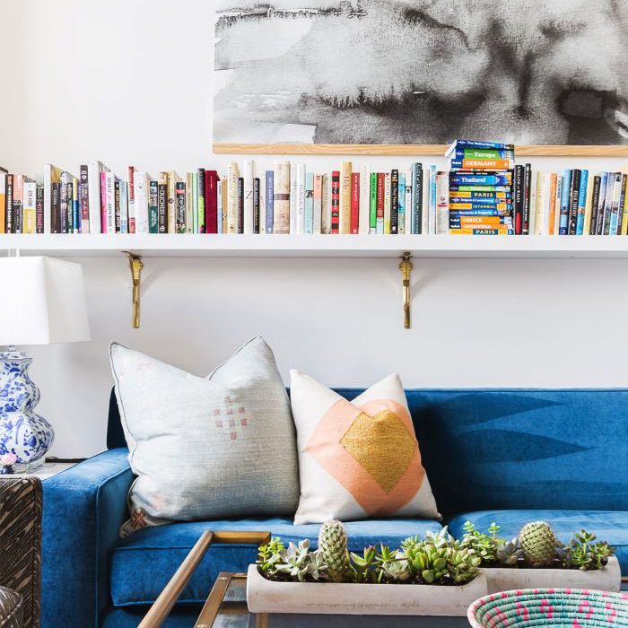 当室内设计师肯德尔·西蒙斯把她的房子缩小到一个历史性的660平方英尺的阁楼纳什维尔,她没有让小尺寸破坏她的装修计划。相反,西蒙斯和她的丈夫把它塞满了个性、感性的发现和明亮的颜色,剔除了任何“不是真正美丽或有意义”的东西。The intimate space reflects the couple's eclectic taste and global travels. "Our move to a small space was fueled by a desire to live more intentionally," she told MyDomaine.“我们想把重点放在购买体验上,而不是买能填满我们家的东西。”