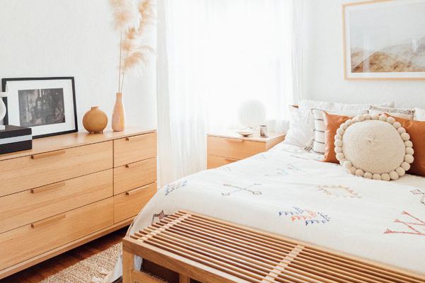 虽然这对夫妇一开始就制定了一个配色方案,但当他们买了更大的家具后,整个房间才真正和谐起来。“我们最初买的两件东西是他在Kalon(洛杉矶当地的一家公司)买的床和他的Oeuf梳妆台,房间就是从那里拼起来的,”Dawbarn告诉MyDomaine。