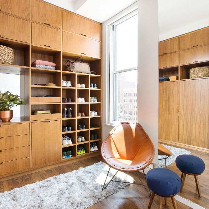 的加尔萨玛法这把椅子是塔瑞克的客户在南美旅行时发现的,也是设计师最喜欢的家居用品之一。作为卧室和更衣区之间的分隔物,这把椅子提供了一个完美的落脚点,让你在早上做好准备。衣橱本身就是一个最佳储藏空间的证明,也是每个纽约人的梦想。