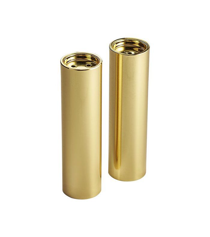 盐瓶和胡椒粉瓶是餐桌上必不可少的,所以一定要让它们看起来很合适。这些刷金的美女是你的晚餐设置的完美补充。