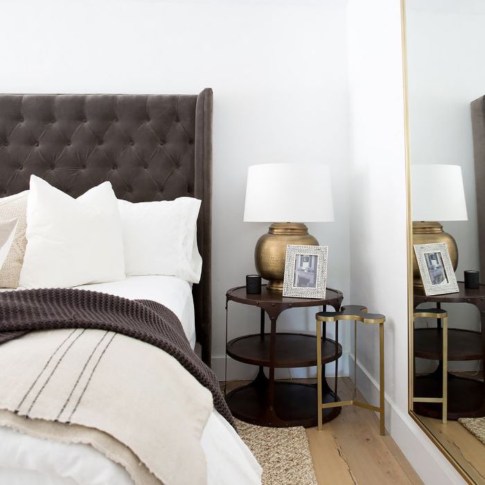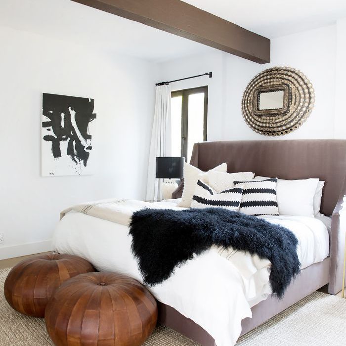 “对于卡斯塔卧室中,我们使用从恢复硬件薄帧天蓬床和模仿与来自一个国王里的皮革和铁长凳这些行。为了抵消金刚石钢灰色的地毯,我们保留了枕头的固体,我们添加青铜和黄铜的触动,”巴勃罗和Korenberg说。