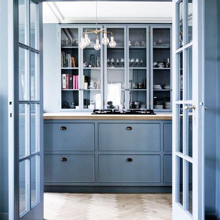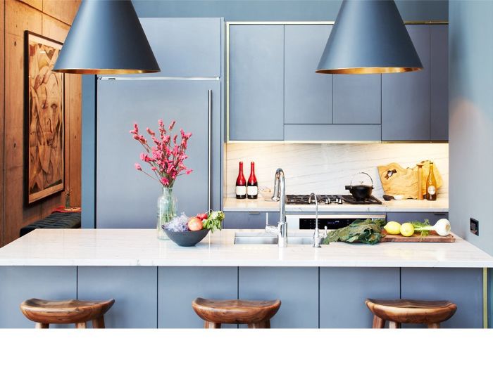 如果有一个房间能让潘通的宁静真正闪耀,那就是厨房。最近我们看到一些法式蓝色的厨房橱柜突然出现在室内。它与淡木色和淡淡的黄铜搭配得特别好。