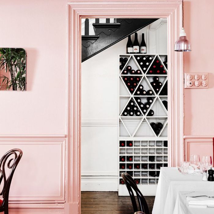 在Entrecote这家位于墨尔本的餐厅的房间被刷成了充满活力的淡粉色和泥绿色。其余的家具都保持了古典风格:白色的桌布和传统的弯木椅向法国小酒馆致敬。