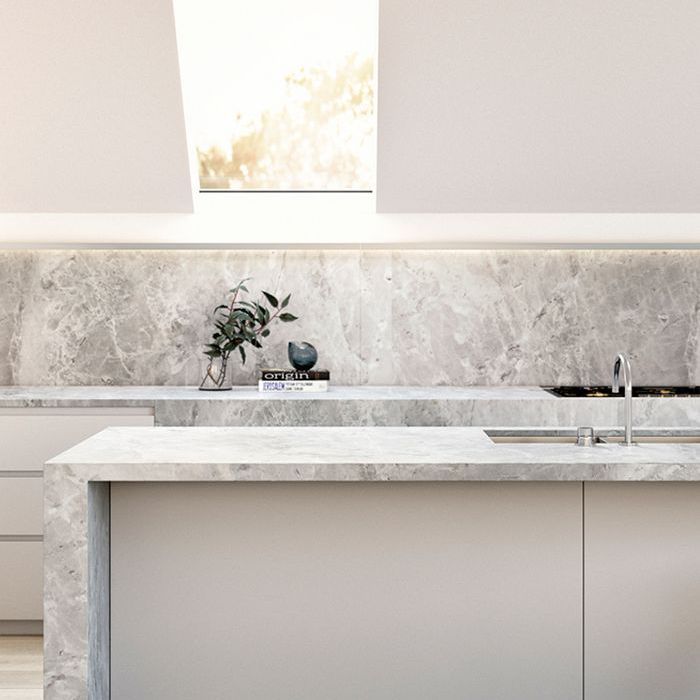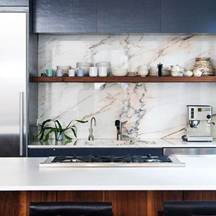 如果你一直在厨房里用薰衣草色和兰花色的大理石墙壁装饰,那就用亮粉色的炊具和玫瑰金的色调来衬托那些华丽的斑点吧。浅色的硬木地板也是软化的好方法。