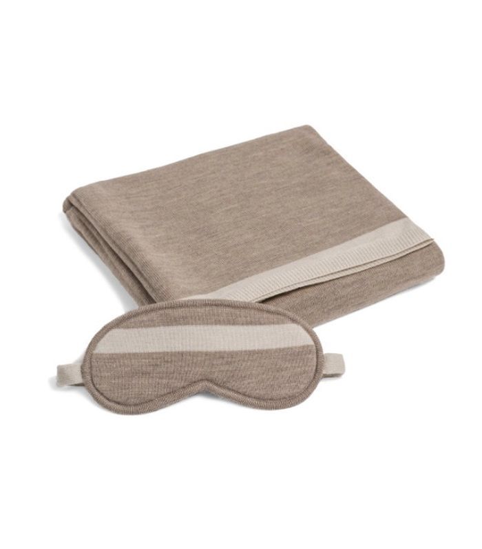 不知道什么原因,我没有被子就睡不着。即使外面是90度,我也得有东西罩着我,否则我就是睡不着。这是我的安全。由于飞机上出了名的冷,我旅行时总是带着毯子。这条毯子也是我之前提到的茧计划的一部分。一旦你把连帽衫套在头上,戴上耳塞,戴上耳机,你就可以把毯子盖在整个身体上,把它裹起来。