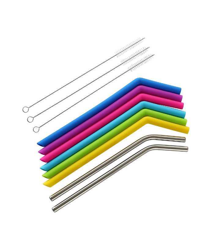 这组包含六个硅吸管,两个不锈钢吸管,以及三个清洗刷。