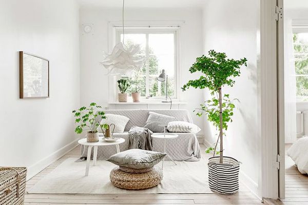 专业提示:柳条照明是一个完美的补充houseplant-filled客厅。