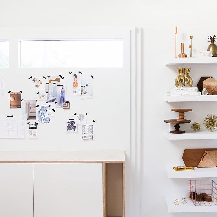 就像她多样的标题(设计师,艺术总监,内容创建者),谢尔曼所需要的工作室“磨损,因为我做很多的帽子。”这意味着它必须是一样实用,因为它是漂亮。“我们去了所有的白色无处不在(装饰用本杰明·摩尔白色是准确的),”她说。“它作为一个干净的背景下对产品和工作室芽,客户会议和设计演示的地方,并创造一个空间,写,设计和化妆。”