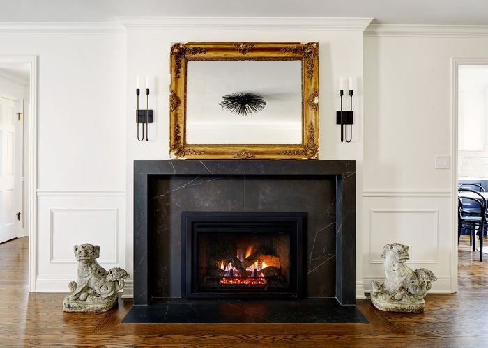 也许,房子最引人注目的元素,古董镜子坐在上面的墙上挂着两幅现代烛台,看似陈旧的雕像在地面之间的黑色大理石壁炉。这是Dirkse的喜爱认定的房子之一。“我们爱结合复古和古董到项目中,”她说。