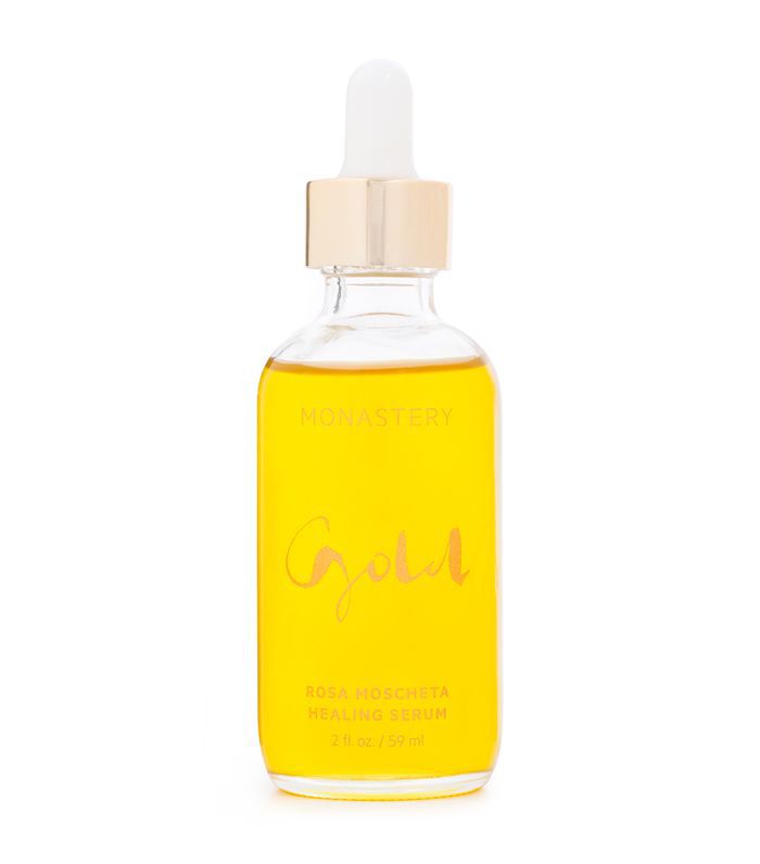 “我们的金愈合血清具有覆盆子籽作为一种成分,它含有很强的抗氧化剂,其抑制紫外线损伤,并刺激细胞修复在变暗斑点”。- 雅典娜休伊特