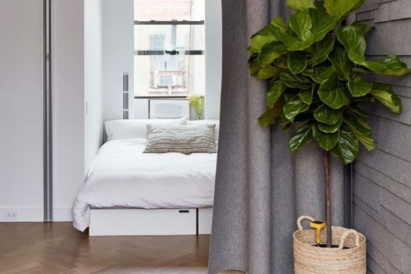 从零开始构建的好处之一是能够将自定义存储解决方案合并到空间中。Crha解释说:“在床的两侧创建嵌入式壁橱固定了睡眠区域,并创建了一个舒适的角落,同时增加了急需的存储空间。”
