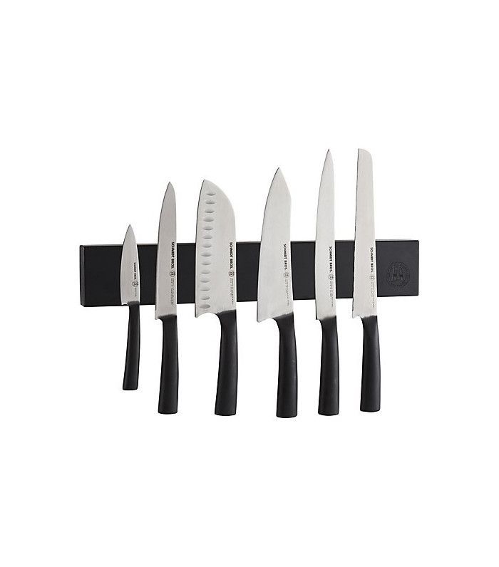 如果你没有抽屉,可以考虑把通常在抽屉里的东西——比如餐具和烹饪刀——放到架子上或磁棒上。装饰容器或磁条可以把器皿放在手边,腾出抽屉空间。