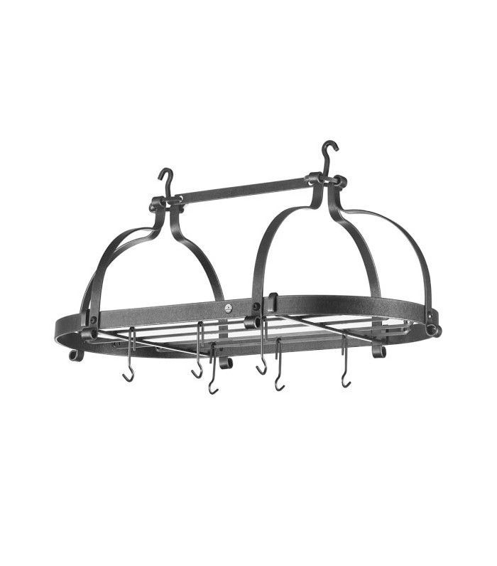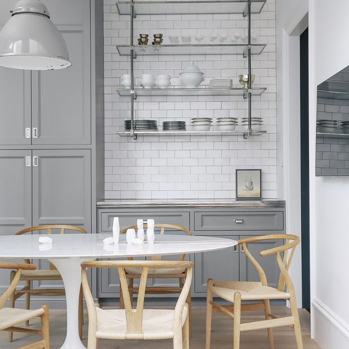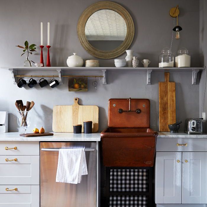 不要把你的锅碗瓢盆放在小厨房里,浪费宝贵的橱柜空间。使用一个装饰架或一系列的挂钩来安置和展示你最胖的物品。这将为其他不太吸引人的厨房必需品腾出封闭的空间。