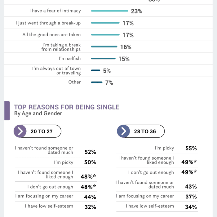 此外,研究人员发现,千禧世代的40%的人说他们是单一的,因为他们专注于自己的事业。彗星认为,这可能与以下事实:更多新千年边催促和长时间不完全离开浪漫的空间。