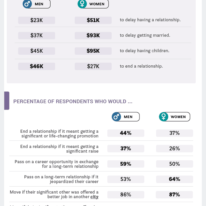 为了把什么千禧会牺牲自己的职业一个确切的数字,在调查中发现,将采取平均$ 36,000延迟有关系,$ 64,000个推迟结婚,$ 67,000名伺候孩子和$ 37,000名调用它退出上完全的关系。