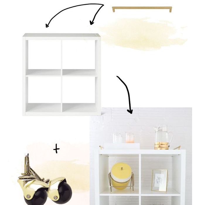 黑客:我们最喜欢的一个启发第一公寓黑客, 这个DIY理念提升一个简单的立方体状的单元只有一个黄铜硬件的屈指可数。接通其侧部,并使用一个钻头固定黄铜轮上底面每个角上。然后,将其翻转过来,让单位是站在新的轮毂和标志,你想吧车把手是。通过钻木一个洞,插入黄铜垫圈,然后用螺丝从下方固定手柄。最后,风格投手,托盘车,和其他酒吧要领。