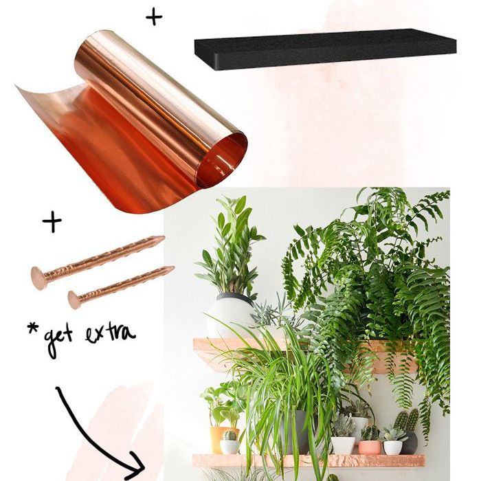 黑客:与浮动架和一些精心设计,产品装饰你的墙壁是字符添加一个空格一个简单的方法,但基本的纸板货架上可以让你感觉有点平庸。如果你希望你的架子对手就可以了华丽的项目,考虑铜片包裹它们。曼迪居布莱创造了这个黑客从无到有各具特色她的货架,但如果你的时间差,从目标预制货架会给你一个类似的成品外观。