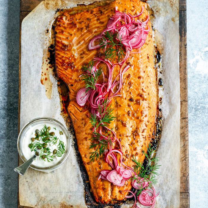 盘子:如果你喜欢的鱼像红肉或鸡肉钾等基于动物的来源,那么鲑鱼是最好的选择。这个食谱被带到我们通过从厨房,它产生一个精心准备的鲑鱼菲力。烤的石榴与赫比,大蒜蛋黄酱釉,它肯定会成为你的房子晚餐主食,它使钾摄入量更入味。